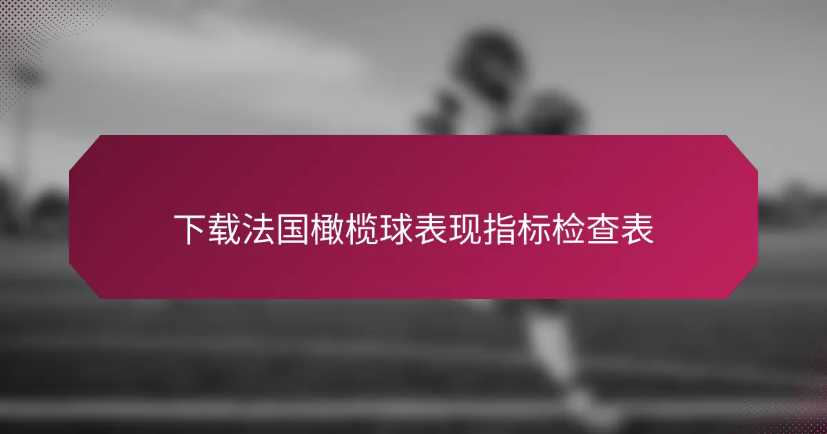 您可以通过访问官方橄榄球协会网站或指定资源页面下载法国橄榄球绩效指标检查表。该检查表通常以多种格式提供,以满足不同用户的偏好。